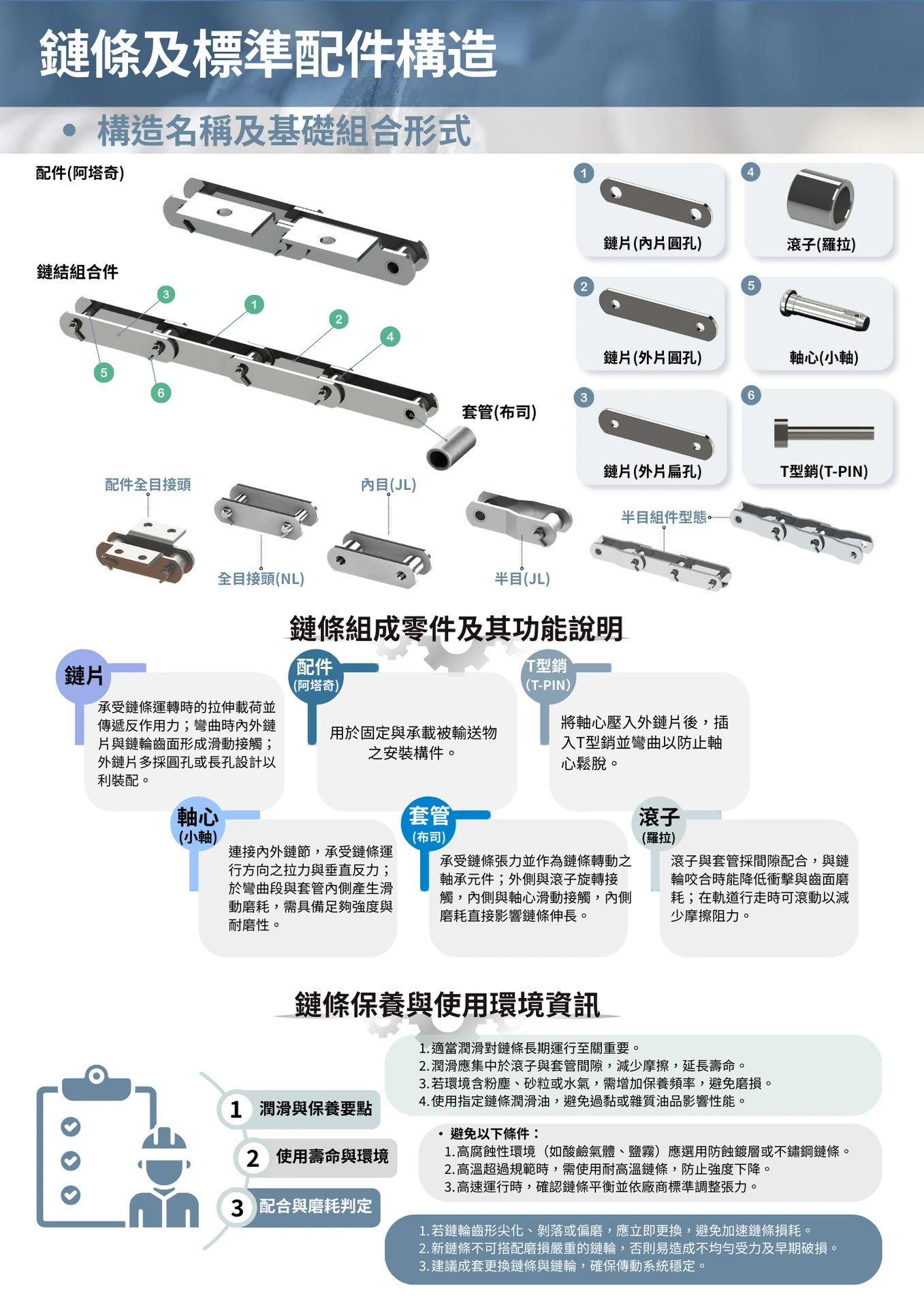 本系列可選配R、S、F型滾子,並支援A1、A2、K1、K2等配件組合,能依不同輸送需求靈活配置。