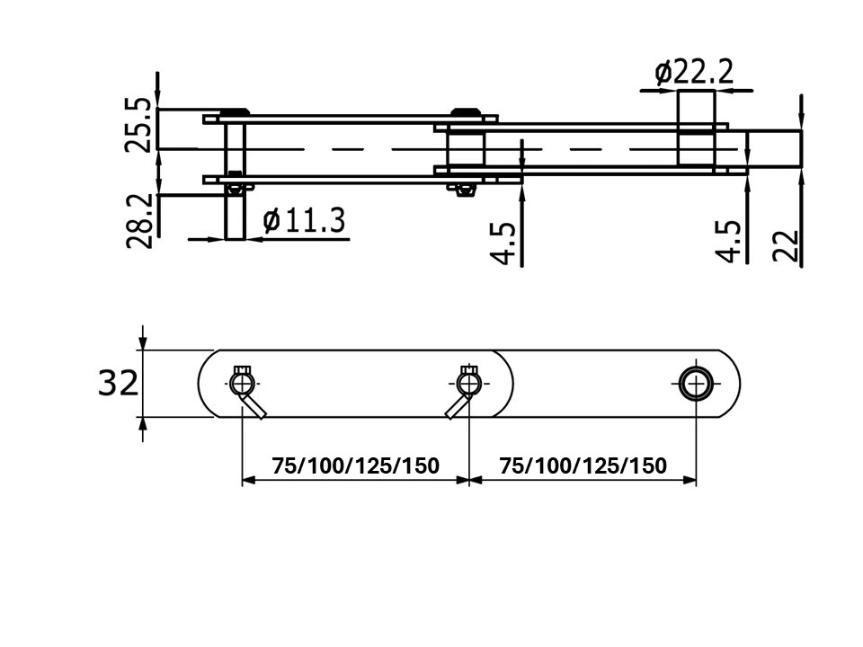 RF05系列大節距輸送鏈條(RF05075 / RF05100 / RF05125等)